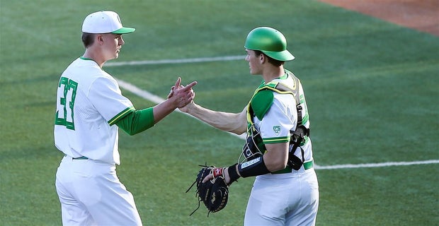 Shortstop Josh Kasevich ended the ball game with an athletic diving play to his left, getting up and throwing to Matthews, who picked the ball out of the dirt, giving Oregon a 5-4 win and a 2-0 series lead.